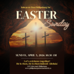 Our worship service for Easter Sunday begins at 10:30 a.m. Join us as we celebrate our risen Lord! Our service includes scripture, an Easter message and uplifting hymns with special music by Wendy and Trevor Wagler.